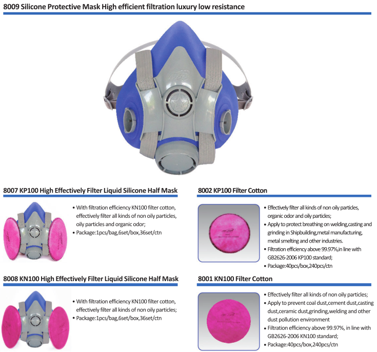 ●With filtration efficiency KN100 filter cotton,effectively filter all kinds of non oily particles,oily particles and organic odor;