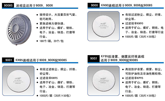 ●可接濾毒盒及濾棉盒,作為防毒或者防塵面罩。
